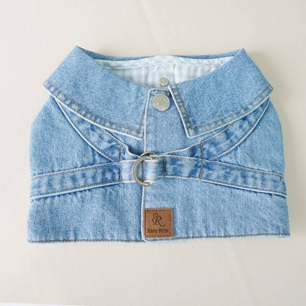 데님 소재로 귀여운 강아지 하네스입니다. 옷을 입힌 것 같은 효과를 낼 수 있고, 다른 옷과 함께 매치해도 좋아요. 사이즈는 S~L 세 가지로, 6kg 이하의 소형견용으로 추천해요. 신축성은 없지만 벨크로(찍찍이)가 달려 있어 약간의 사이즈 조절은 가능합니다.