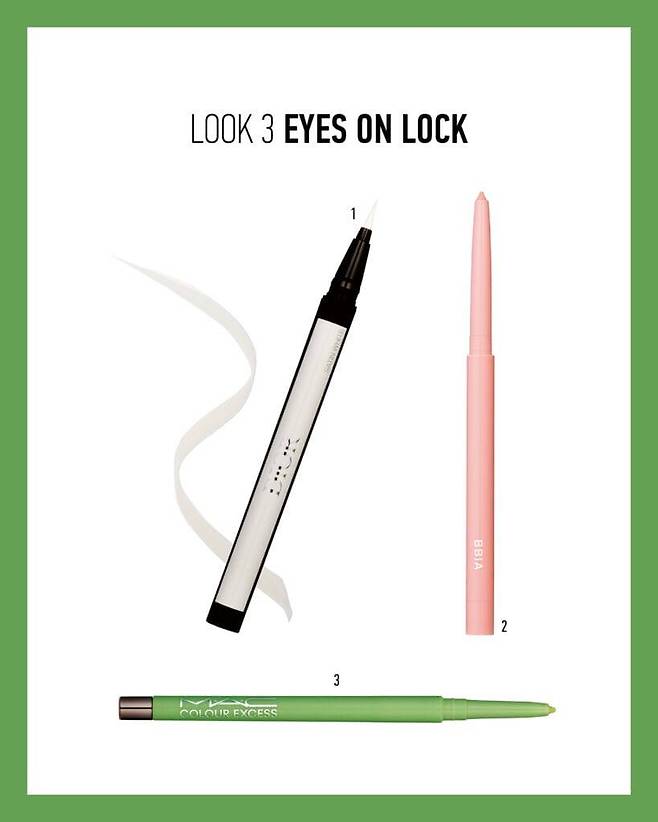 3 맥 컬러 엑세스 젤 펜슬 아이 라이너 #민티 프레쉬 청량한 그린 컬러가 눈꺼풀에서 24시간, 눈 점막에서 12시간 동안 번짐 없이 지속된다. 0.35 4만5천원대.