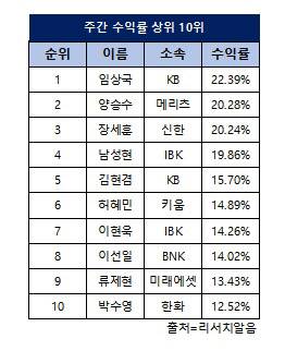 [스타애널]임상국 KB증권 연구원 ‘미스터블루’ 주간수익률 1위
