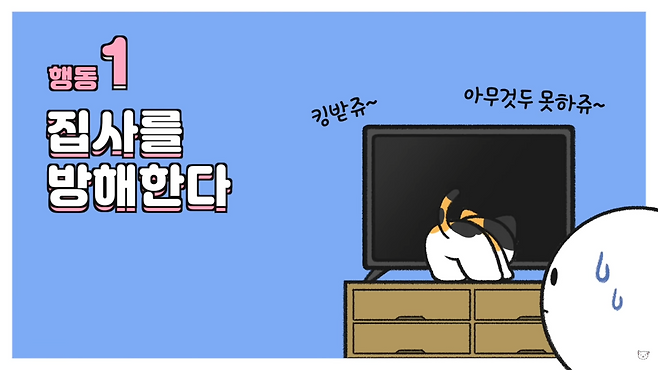 집중해서 TV를 보거나 책을 읽을 때, 혹은 컴퓨터나 핸드폰을 하고 있는데 갑자기 고양이가 눈앞을 막거나 방해할 때가 있습니다.