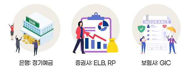 은행의 정기예금 외에도 증권사의 ELB(Equity Linked Bond, 주가연계파생결합사채)와 RP(Repurchase Agreements, 환매조건부채권), 보험사의 GIC(Guaranteed interest contract, 이율보증상품) 등이 있는데요.
