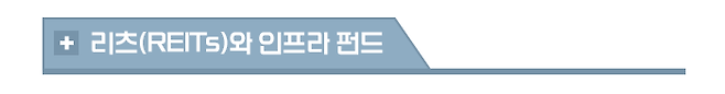 이 외에 또 다른 실적배당상품으로는 리츠(REITs)와 인프라 펀드가 있는데요.