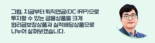 그럼, 오늘은 먼저 첫 단계인 퇴직연금으로 어떤 상품에 투자할 수 있는지 알아보겠습니다.