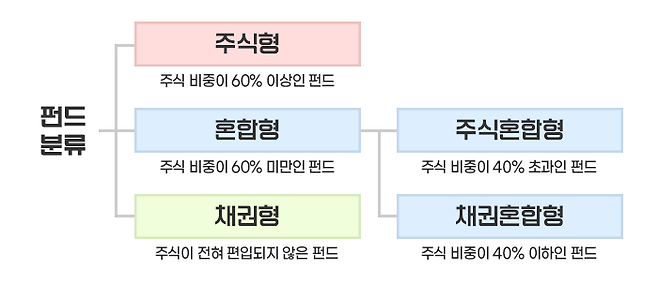 펀드는 주식 편입 비중에 따라 주식형, 혼합형, 채권형으로 분류하는데요.