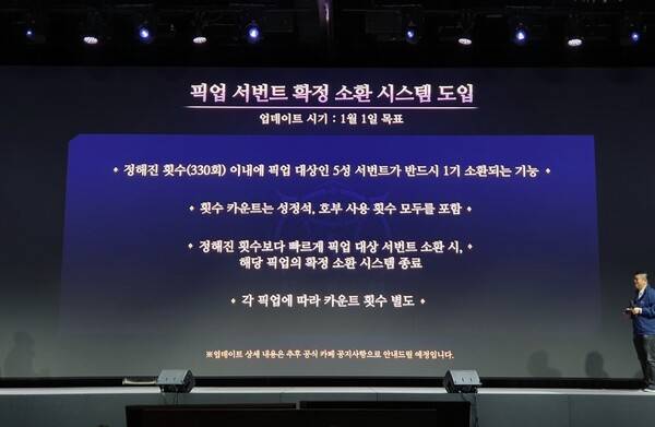 넷마블이 '페이트 그랜드 오더(이하 페그오)'의 '픽업 서번트 확정 소환 시스템(천장)'을 내년 1월 1일 조기 도입한다. 330회 이내 픽업 대상인 5성 서번트가 반드시 소환된다는 의미다.