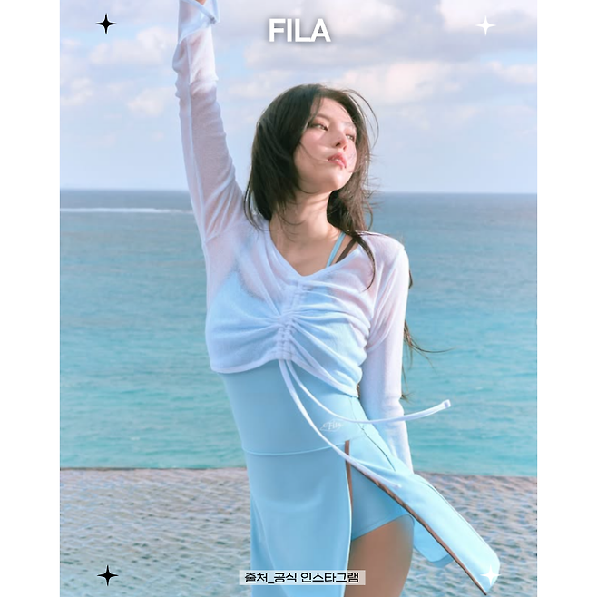 상의로는 메쉬 셔링 커버 업 제품을 착용하여 자외선으로부터 피부 지켜지켜~