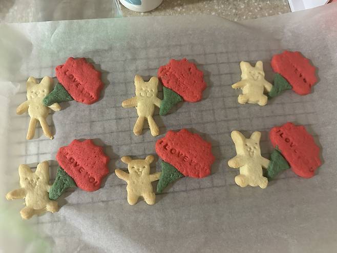 오늘 소개해드릴 놀이는 바로 카네이션 쿠키랍니다! 어버이날을 맞아 주변에서 카네이션 토이쿠키 키트를 선물해 주셔서 아이와 함께 어버이날에 만들어보았어요. 내년에 소개해드릴까 하다 아직 스승의 날이 남아있어서 공유해드려요! 선물받은거라 정확히 어디키트인진 모르겠지만, 토이쿠키 반죽을 사셔서 구우시면 될 것 같아요! 토이쿠키 반죽은 마트에서 구매하실 수 있답니다.