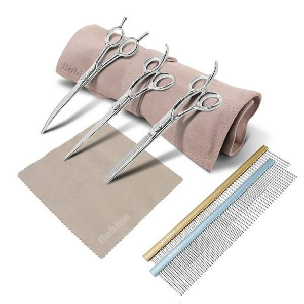 바비온 초급자용 반려동물 미용가위 E2 3종 + 가죽 케이스 + 연마 가죽 + 메탈 콤