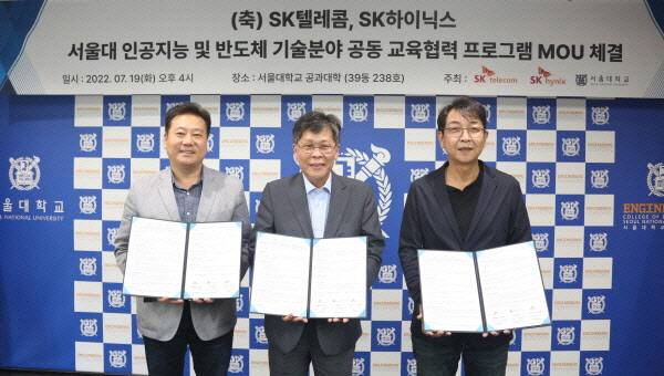 서울대학교 공과대학(학장 홍유석)은 지난 19일 SK텔레콤(SKT), SK하이닉스와 인공지능과 반도체 관련 산학 프로그램 협력을 위한 업무협약(MOU)을 체결했다고 밝혔다.