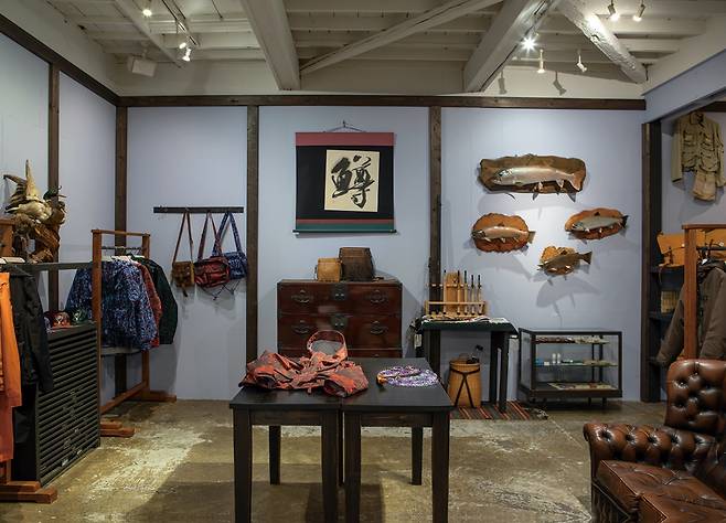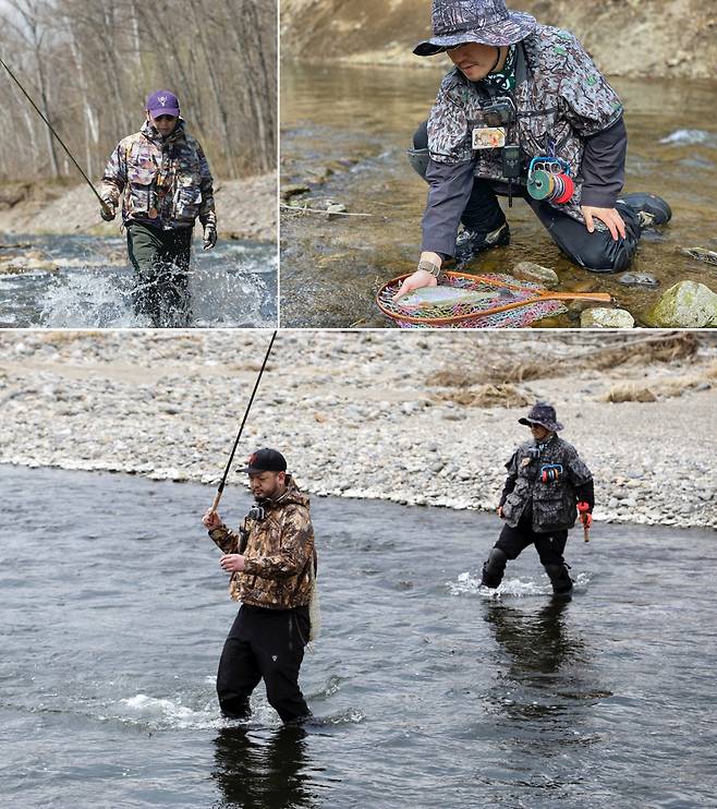 텐카라 제품군이 매력적인 건 단순히 제품의 기능과 디테일을 넘어 제품을 통해 삶의 양식을 제안하는 데 있다. 울창하고 푸르른 산속 시원한 냇가에 발을 담그고 흘러가는 낚싯줄을 바라보며 낚시하는 모습. 상상만 해도 청량해지지 않나. 유튜브에 South2 West8을 검색하면 계절별로 텐카라 낚시 영상이 남긴 채널이 있는데 놀랍게도 남이서팔의 공식 채널(https://bit.ly/47DMDwF)이다. 옷에 대한 설명은 일절 없고 남이서팔의 제품을 입고 낚시하는 영상이 업로드 되어 있다. 대부분 남이서팔의 직원이며 심지어 시미즈 케이조도 등장한다. 디렉터와 그 직원이 얼마나 텐카라에 열광하는지 짐작할 수 있다.
