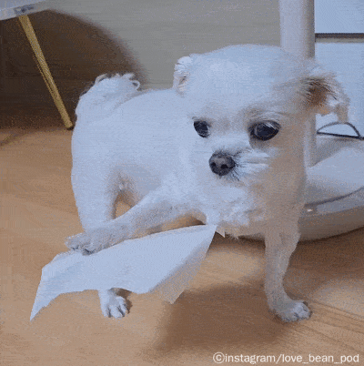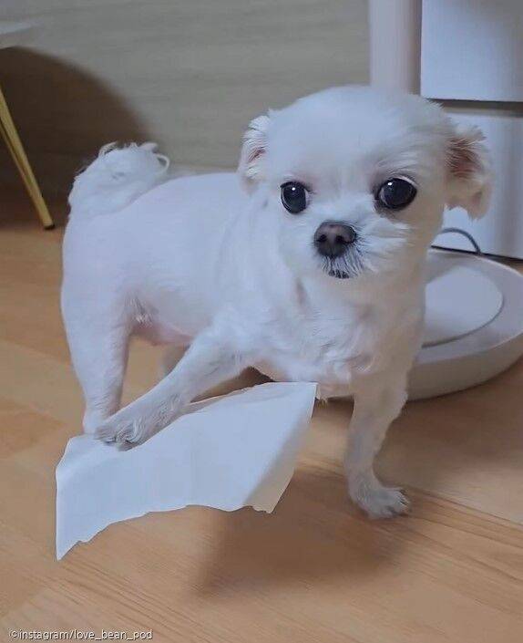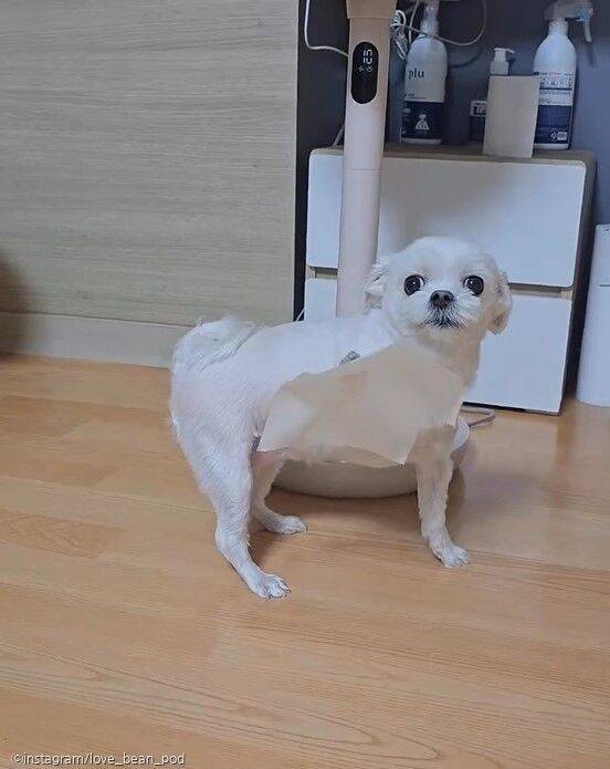 [노트펫] 강아지가 돌아다니다 발바닥에 테이프가 붙어 '고장 나버린' 모습이 사람들에게 웃음을 주고 있다.
