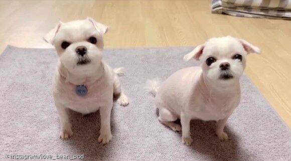 영상에는 하얀 말티즈 강아지 '담비'의 모습이 보이는데. 한쪽 팔을 든 채 멈춰 당혹스러운 눈빛으로 주인을 쳐다보는 녀석.