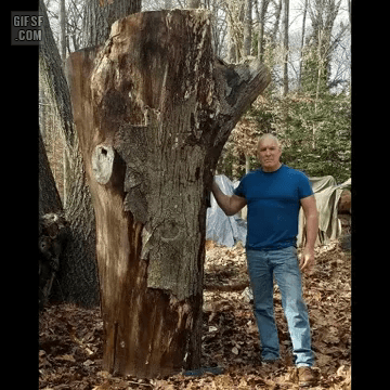 오크나무로 만든 아놀드 슈워제네거 조각.gif