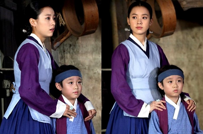 한효주는 드라마 '지배종' 홍보 촬영 중 반가운 이를 만났습니다. 바로 MBC 드라마 '동이'에서 자기 아들 역이었던 이형석과 재회했죠.