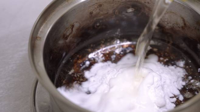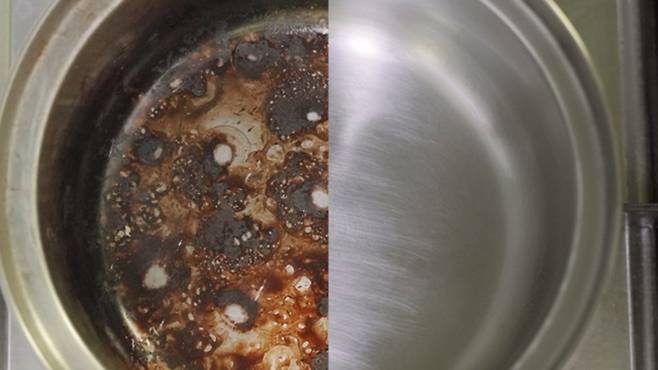 그럴 땐 식초와 베이킹소다를 섞은 후, 물을 받아 20~30분 정도만 끓이면 끝이랍니다. 이렇게 하면 탄 부분이 충분히 불어 나와 아주 닦기 쉬운 상태가 돼요.