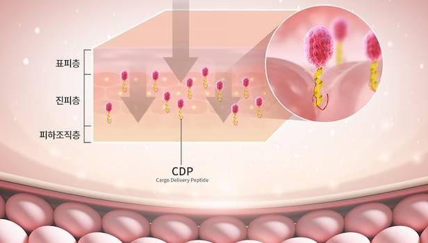 이 CDP 기술이 피부 유효성분을 피부 진피층까지 안전하게 전달한다. 피부 속 문제성 핵심 부위에 빠르게 도달해 수분과 영양을 공급한다. 피부 주름과 떨어진 탄력을 개선하는 데 도움을 준다. 임상 시험을 통해 주름 개선, 피부 톤 개선 효과를 입증했다.