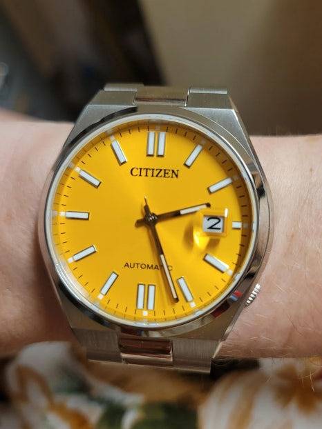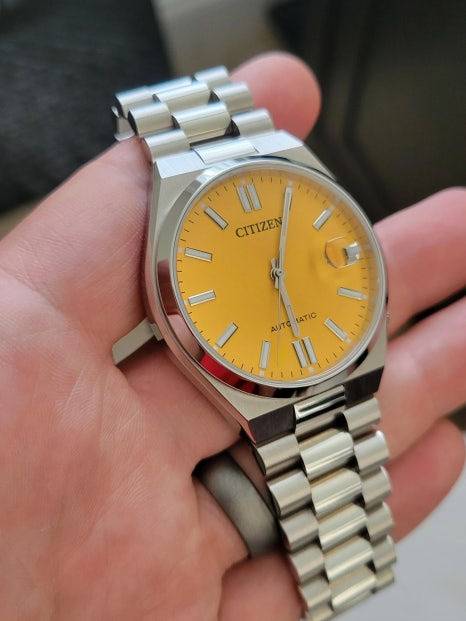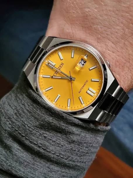 특히 옐로우에 끌린다면 정말 만족도 높을 것 같아요.무브먼트도 자동이고, 디자인도 유행 타지 않게 베이직한 구조라 충분히 입문자에게도 매력적인 선택지일 수 있습니다