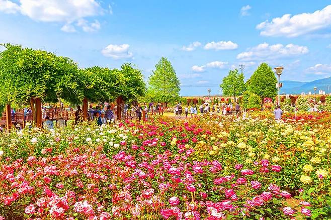 축제장은 국내에서 가장 많은 세계 장미 품종을 한눈에 볼 수 있는 곳으로, 약 75,000㎡에 이르는 광활한 면적에 수억만 송이 장미가 만개해 장관을 이루지요. 이번 축제의 주제는 ‘장미로 물드는 하루, 올데이 로즈(All Day Rose)’로 정해졌습니다.