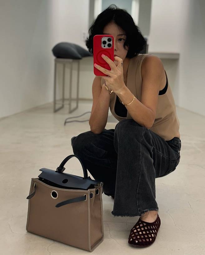 은은한 골드 팔찌와 깔끔한 토트백이 더해지며 차분하면서도 도시적인 무드가 느껴졌어요.
