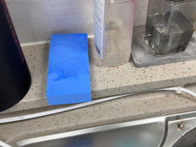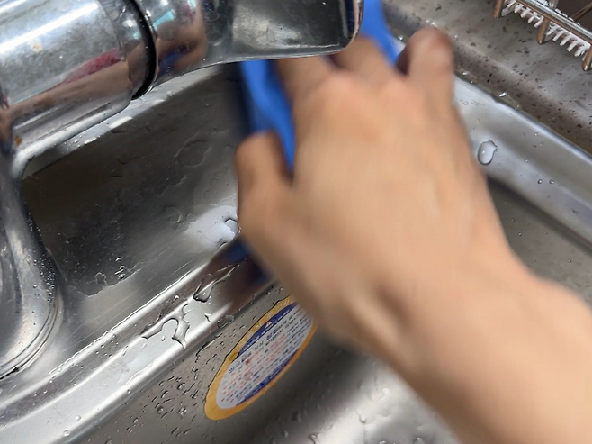 처음 사용 시에는 스펀지에 물기가 잘 흡수하지만 2~3번 사용하면 흡수가 안되어 물기를 털어내어야 합니다.
