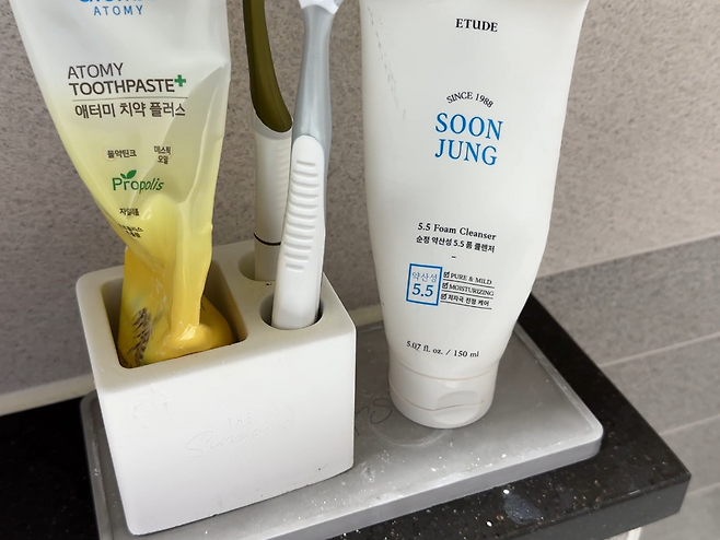 아무래도 욕실에는 물을 많이 사용하다 보니 칫솔꽂이에 곰팡이가 생기고 위생적으로 너무 안 좋아 보였습니다.