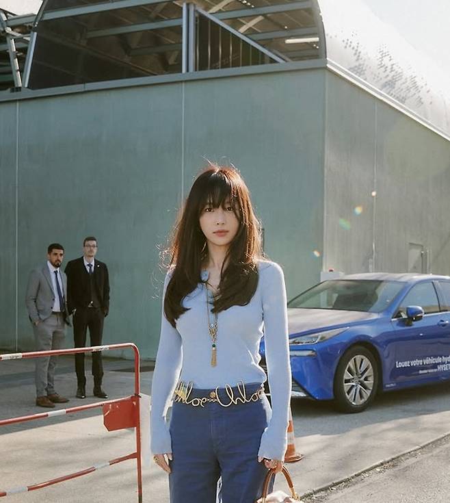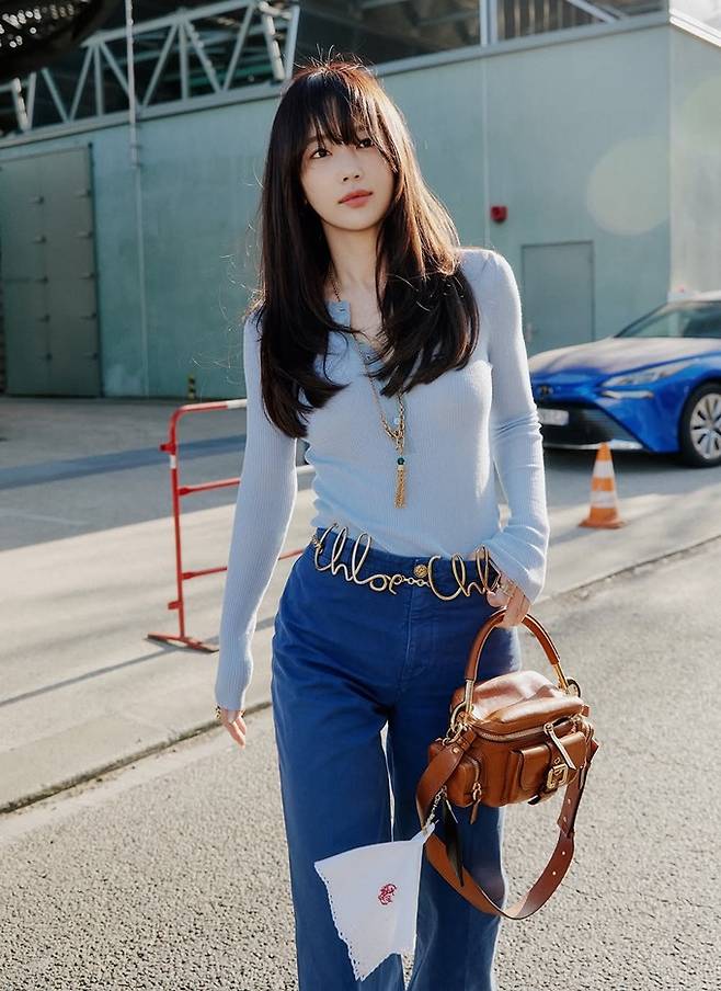 공개한 사진에서 기은세는 데님 팬츠에 블루 컬러의 니트 티셔츠를 걸친 톤온톤 스타일의 패션쇼 나들이룩으로 한 발 앞서가는 패셔니스타의 면모를 드러냈다.