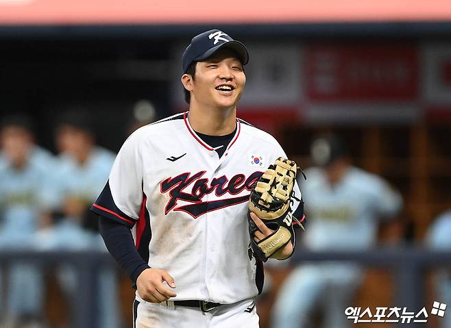 소속팀에서 주전 3루수로 활약하던 문보경은 대표팀에서 1루수를 맡았다. 수비에 대한 부담감은 없었을까. 그는 "부담감은 전혀 없었다. 그냥 경기에 집중해서 잘하려고만 생각했던 것 같다"라며 "타구 같은 건 3루수를 볼 때와 별 차이가 없었다. 각도만 좀 다를 뿐이었다. 대표팀 내야수들의 어깨가 너무 좋아서 공이 정말 강하게 날아와서 처음엔 살짝 어려웠지만, 그래도 훈련하면서 계속 공을 받다 보니까 적응됐다"고 미소를 지었다.