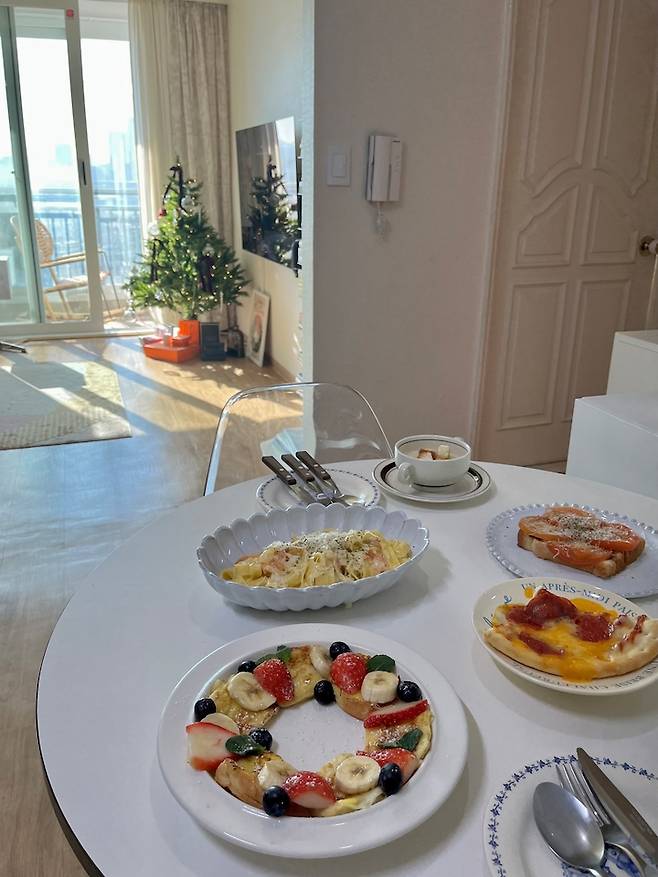 지름 80cm라 4명까지는 식사가 충분히 가능하고, 요리를 즐기는 저에게 홈 테이블 데코로 적합한 사이즈라 만족하며 사용 중에 있어요. 언젠가 좀 더 큰 집으로 이사를 가면 6인용 이상 테이블을 마련해서 더욱 화려한 홈 테이블을 꾸미고 싶은 꿈이 있어요! :)