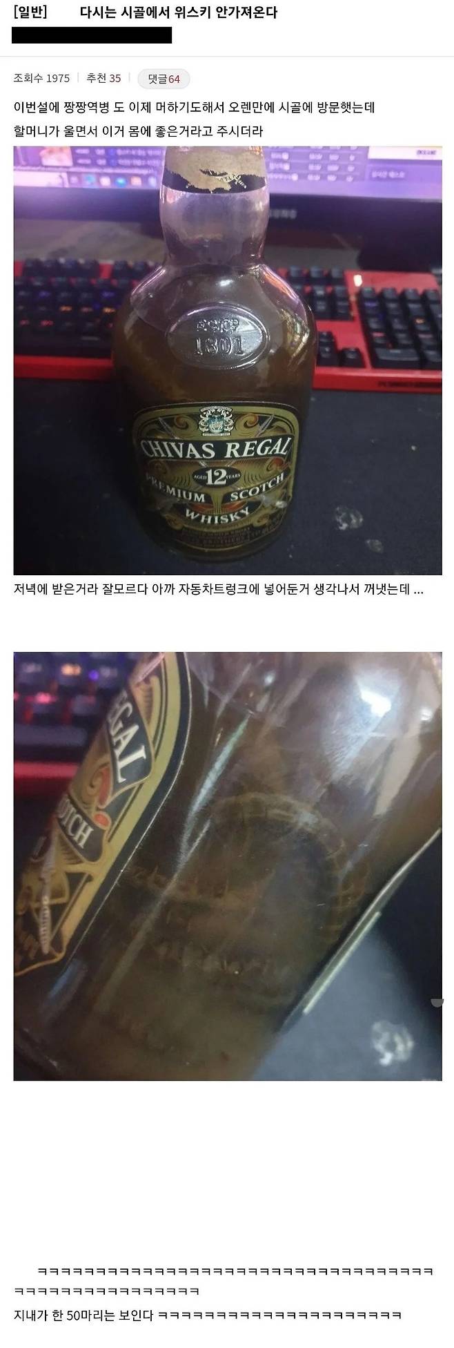 몸에 좋은 위스키라며 챙겨주신 할머니