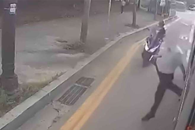 정류장이 아직 도착하려면 약 20m 정도는 더 가야 한다. 하지만 버스 기사는 정류장 도착 전에 하차 문을 열어주었다. 문을 열어주는 것과 동시에 뒤쪽에서 오토바이가 길을 꺾고 승객이 내려서 갈 길에 진입하게 된다.