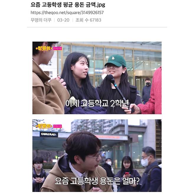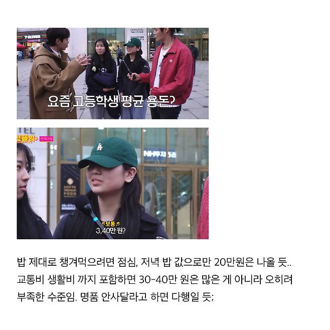 요즘 고딩들 평균 용돈 금액