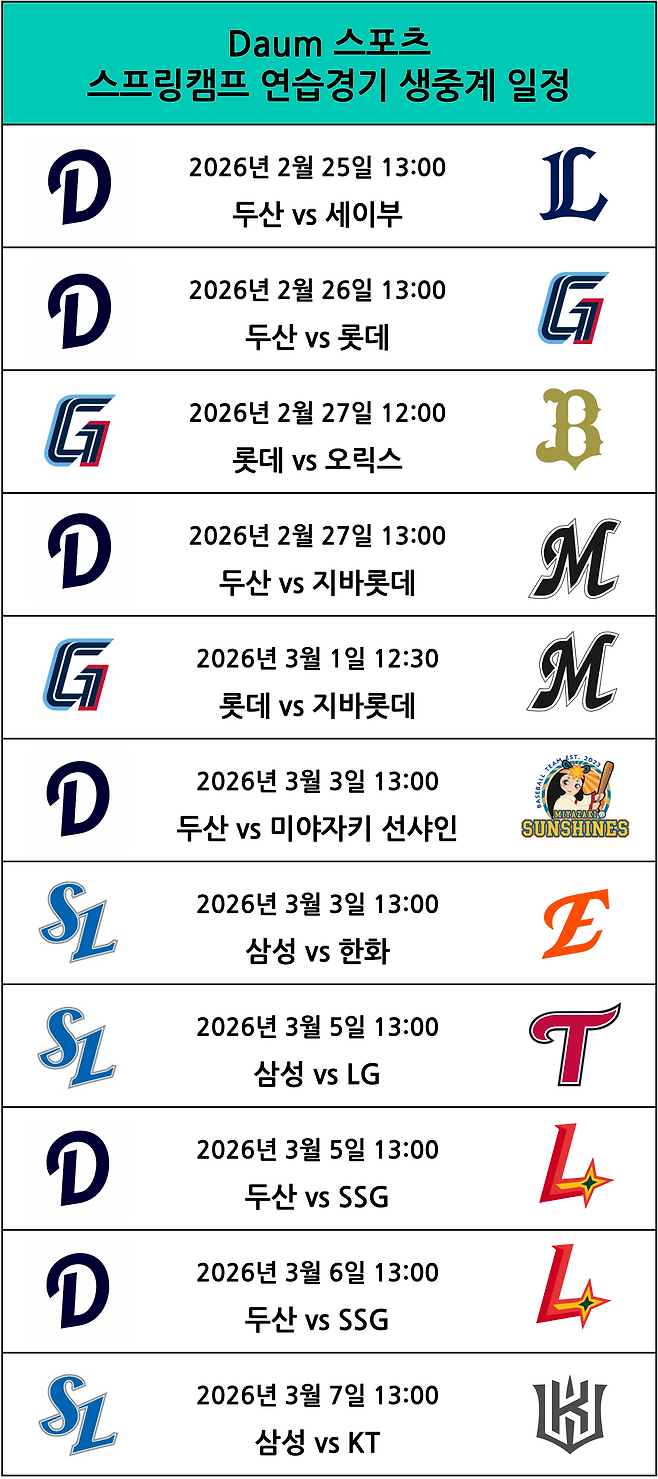 스프링캠프 연습경기 생중계도 Daum스포츠와 함께하세요!