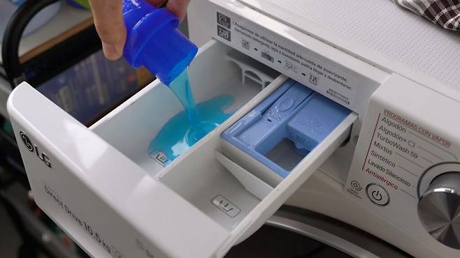 세탁기 용 세제와 섬유유연제를 적당히 넣어 주세요. 세탁기 안에 있는 양이 적기 때문에 세제를 많이 넣지 않아도 돼요.