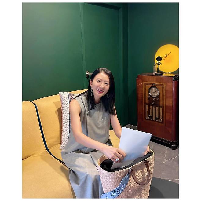 그린 컬러의 인테리어를 배경으로 김희애가 그레이 슬리브리스 원피스를 입고 편안하면서도 세련된 분위기를 자아내고 있다. 심플한 디자인의 원피스는 여유로운 실루엣으로 편안함을 강조하면서도 우아한 분위기를 잃지 않고 있다. 긴 귀걸이로 포인트를 주어 얼굴을 더욱 화사하게 만들고, 노란색 조명과 빈티지 라디오가 있는 공간에서 레트로 무드를 완성하고 있다.