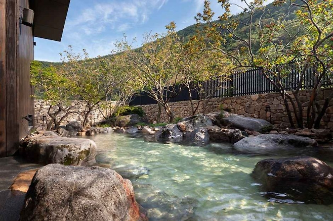 노천탕에 채워지는 물은 국내 최고 수질로 평가받는 천연 온천수다. 뜨거운 김이 오르는 물에 몸을 담그고 있으면, 주변의 소리는 사라지고 감각만 또렷해진다. 이곳의 온천은 피로를 풀기보다, 생각을 비우는 데 더 가까운 경험이다.