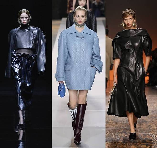 뉴욕과 밀라노 패션위크 디자이너들은 바이커 재킷과 코트 등을 넘어 가죽 톱, 가죽 셔츠, 스커트, 뒤스티에 등으로 영역을 확장하고 흐르는 듯한 실루엣과 다양한 수공기법을 접목해 강렬한 존재감을 발산했다.