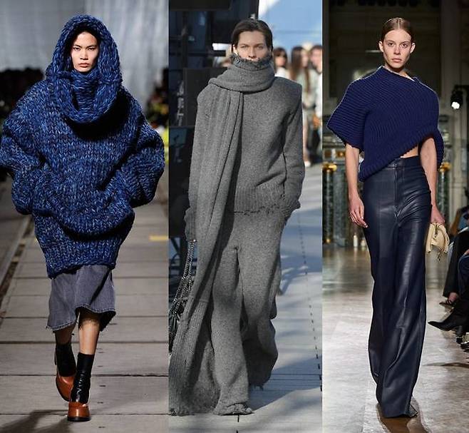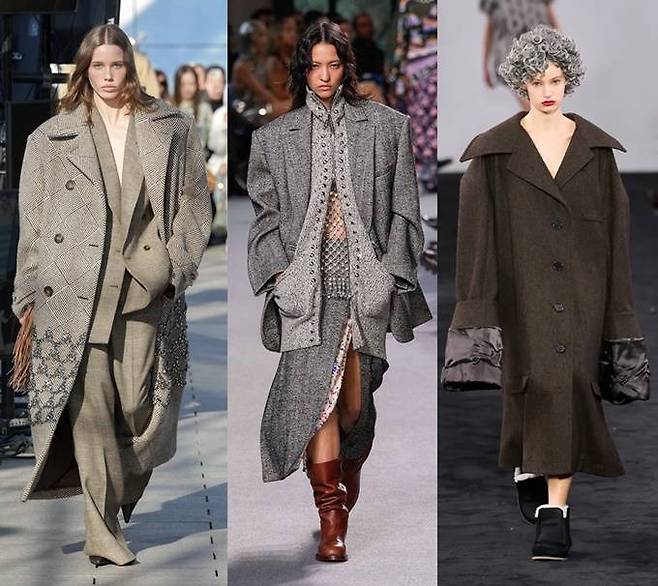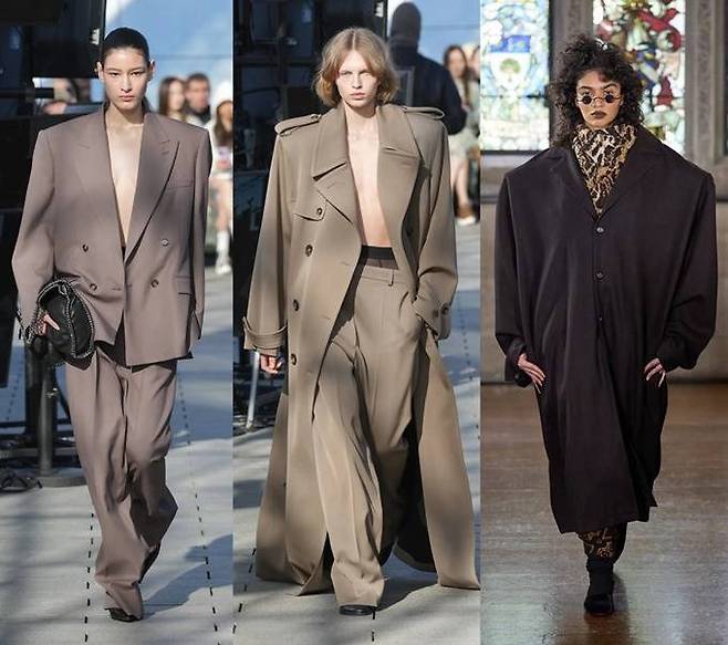 런던, 파리 패션위크 무대에는 어깨에 ‘뽕’을 넣은 듯한 파워 숄더 코트부터 재킷, 셔츠 등에 이르끼까지 과장된 형태의 슈퍼사이즈 아우터가 대거 등장했다.