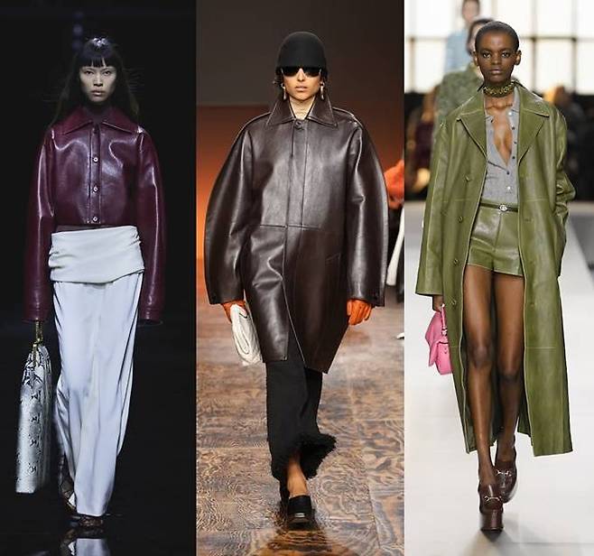 로고나 브랜드명을 드러내지 않으면서, 고급스러운 소재와 절제된 디자인의 올드머니룩이 부상한 가운데 올 가을/겨울에는 가죽 특유의 광택감과 부드럽게 흐르는 듯한 유려한 테일러링의 고급스러운 가죽 올드머니룩이 인기를 끌 것으로 보인다.