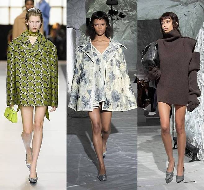 해외 셀럽들의 전유물로만 여겨지던 팬츠리스 트렌드는 최근 국내에도 빠르게 퍼지고 있으며 이번 밀라노 패션위크 무대에서도 미니멀리즘의 영향을 받아 쇼츠와 미니 스커트가 극단으로 치달으며 짧아졌다.