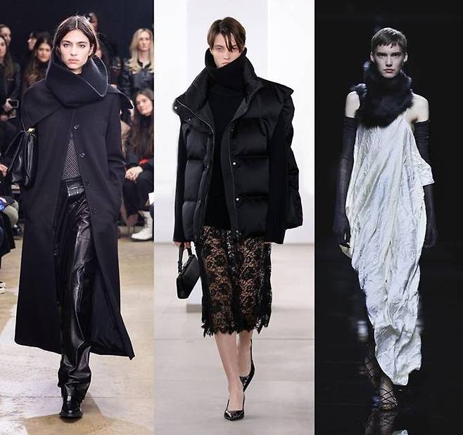 뉴욕 디자이너들은 모자와 넥 워머를 결합한 형태의 바라클라바(Balaclava)에 이어 넥워머 아우터를 대거 선보였다.