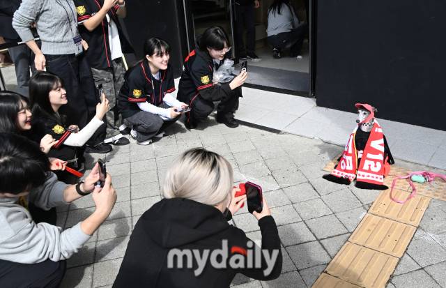 [마이데일리 = 광주 송일섭 기자] 23일 오후 광주광역시 임동 광주기아챔피언스필드에서 진행되는 '2024 프로야구 KBO리그 포스트시즌' 한국시리즈 1차전 KIA타이거즈와 삼성라이온즈와의 서스펜디드 경기. 팬들이 타이거즈 유니폼을 입은 애완견을 촬영하고 있다.