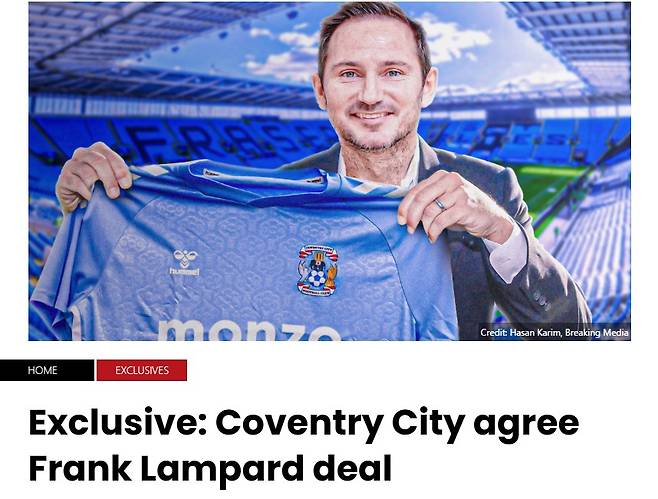 영국 매체 '풋볼 인사이더'는 독점 보도를 내놓고, "램파드가 코번트리의 새로운 감독이 되기로 합의했다"고 전했다.