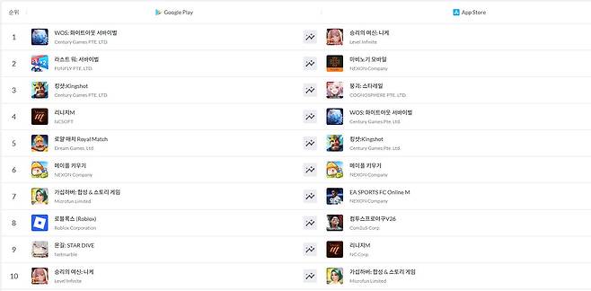 이에 업데이트 전날인 22일에는 구글플레이 매출 31위, 앱스토어 매출 49위에 자리했고, 당일인 23일에는 구글플레이 매출 31위, 앱스토어 매출 42위를 기록한 데 이어 24일 성과로 우상향 그래프를 그렸다.