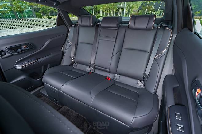 아마 국내 소비자는 크라운의 뒷좌석이 가장 궁금할 듯하다. 키 182㎝의 남자 성인이 앞좌석을 맞추고 뒤에 앉았을 때, 다리 공간은 캠리와 거의 비슷하다. 과거 아발론이나 현행 렉서스 ES보단 조금 작다. 그러나 불편한 건 아니다. 패스트백 실루엣을 지녔지만, 기아 스팅어처럼 머리공간이 답답하진 않다. 2열에도 열선 기능을 갖췄고, 송풍구와 USB-C타입 단자도 챙겼다.