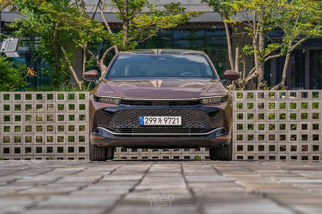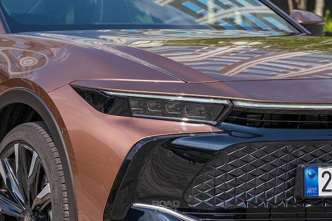 크라운의 표정을 보면 같은 토요타 식구가 맞는지 의심스럽다. 엠블럼부터 신선하다. 토요타 전용 로고가 아닌 왕관 같은 크라운 브랜드 전용 배지를 달았다. 휠 디자인을 제외하면 2.5와 2.4의 차이를 구분하는 건 어렵다. 최신 트렌드를 따른 흔적도 엿보인다. 가령, LED 주간주행등을 가로로 길게 이었고, 커다란 범퍼 속은 독특한 패턴으로 빼곡하게 채웠다.
