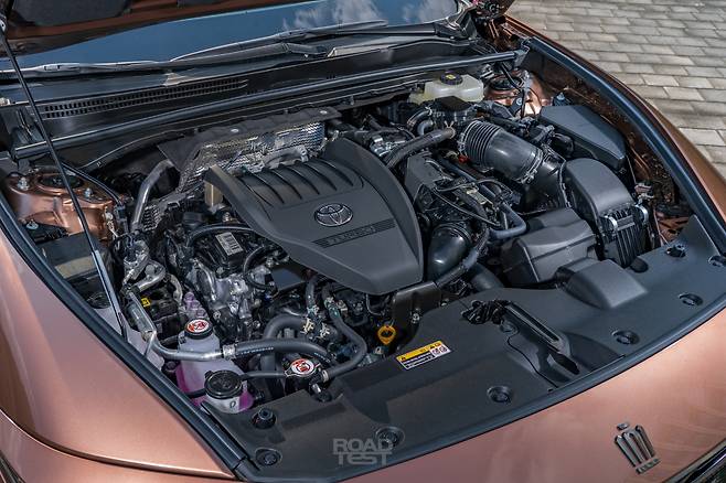효율을 중시한 2.5L 밀러 사이클 엔진으로 300마력 이상 고출력을 뽑아내는 건 어렵다. 그래서 토요타는 모터 도움 없이도 충분한 저회전 토크를 뽑아내는 가솔린 터보 엔진을 준비했다. 핵심 목적은 ‘고효율’과 ‘고성능’의 양립. 모터를 제외한 엔진 자체 출력만 264마력으로, 184마력의 2.5L 엔진과는 80마력의 차이가 있다.