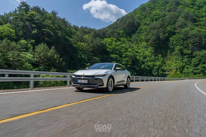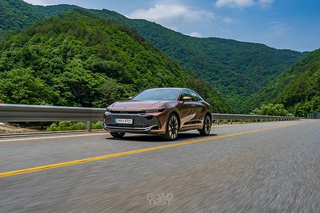 우선 크라운 2.5의 운전대를 잡고 강원도 정선 인근의 굽잇길을 달렸다. 첫인상은 렉서스 ES와 ‘판박이’다. 부드러운 하체의 반응과 조향감각, 정숙성까지 ES300h와 빼닮았다. 엔진과 전기 모터는 운전자가 알아채기 힘들 만큼 자연스럽게 바통을 주고받는다. 다만 ES보단 지상고가 높고 서스펜션의 스트로크가 길다. 그래서 조금 더 낭창거리는 움직임을 느낄 수 있다. 전반적으로 상당히 부드럽다. 21인치 휠을 사용하면서 에어 서스펜션이 없는데도 이러한 느낌을 만들었다는 게 놀랍다.