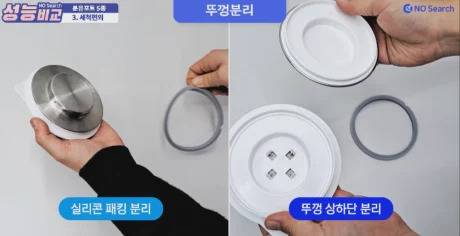 뚜껑 바닥과 실리콘 패킹까지 분리되어야 꼼꼼한 세척 가능