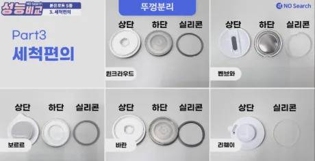 뚜껑 바닥과 실리콘 패킹까지 분리되어야 꼼꼼한 세척 가능