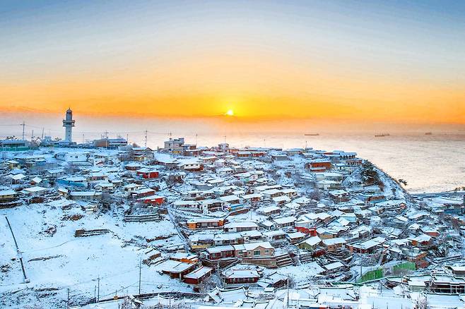 강원 동해시에 위치한 묵호항은 겨울철 차가운 바닷바람과 함께 동해의 푸른 물결을 감상할 수 있는 곳입니다.